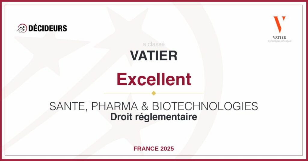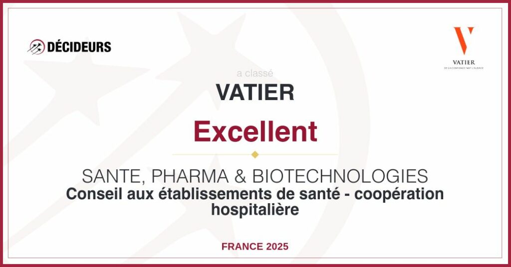 Notre cabinet est très heureux de voir le travail de son équipe Santé faire l’objet d’une reconnaissance à travers le classement 2025 du Guide Santé, Pharmacie & Biotechnologies du magazine Décideurs et ce dans trois catégories: